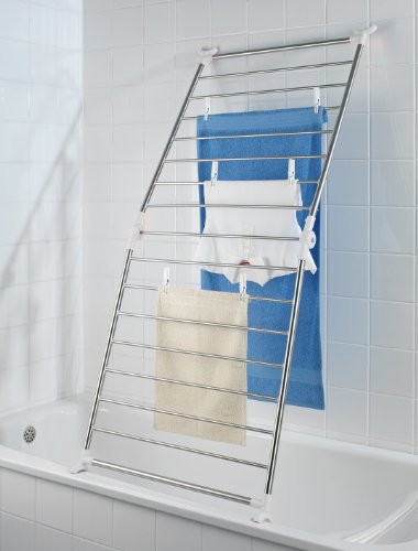 Wenko 3772020100 Profi - Tendedero de acero inoxidable para bañeras, con 11 m de zona para tender (150 x 2,5 x 65 cm)