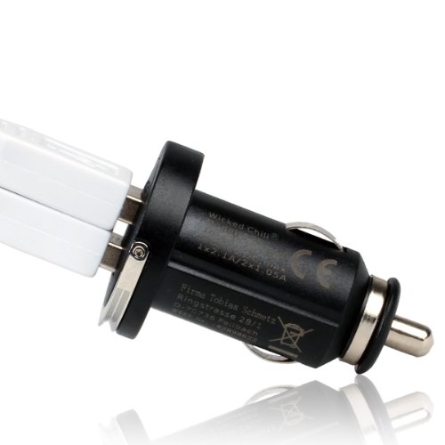 Wicked Chili Dual Cigarette Lighter Charger for Apple iPad 1 / 2 / 3 / 4 / mini and iPhone 4S / 5 12 / 24 V 2100 mA 2x USB Black