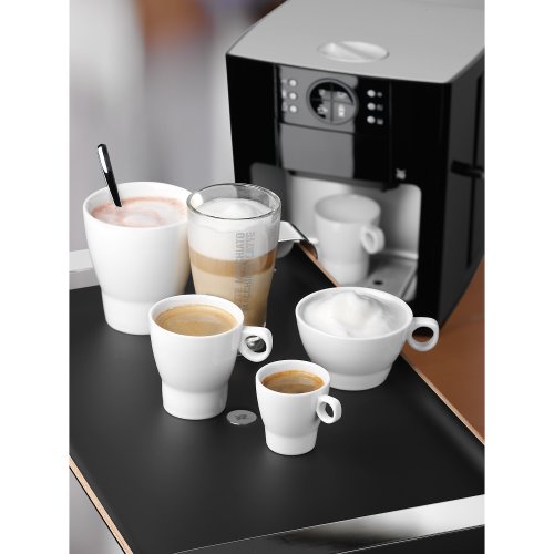 WMF One Touch Funktion - Vielzahl an Kaffeespezialitäten auf Knopfdruck wie Espresso, Cafè Crème und Latte Macchiato, Doppeltassenfunktion - Padhalter ist variabel einsetzbar für 1 oder 2 Kaffeepads, patentiertes Crema System sorgt für die Creme, automatische Vorbrühfunktion für ein vollmundiges Kaffeearoma, WMF Milk Connector für eine saubere Milchlösung, Teach-In Programmierung für eine individuelle Einstellung der Tassenfüllmenge, separater Heißwasserauslauf, WMF Easy Clean für eine einfache und schnelle Milchsystemspülung, automatisches Entkalkungsprogramm, Energiesparfunktionen wie 'Sleep Modus' und 'Automatische Abschaltung' verringern den Energieverbrauch auf ein Minimum, großer 1,6 l Wassertank, herausnehm- und befüllbar